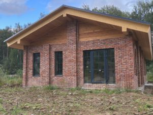 •Комбинированный фасад из кирпичной кладки и планкен из лиственницы.
