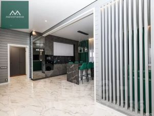 — 5 изолированных спальных комнат, гардеробная комната, 2 с/у, бойлерная, просторная кухня-гостиная с выходом на террасу, собственный выход на балкон из спален второго этажа