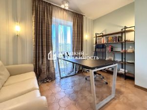 3 изолированных комнаты: спальная с рабочей зоной; детская с большим количеством окон, где организовано большое игровое пространство и обособленное спальное место; а так же кабинет, где рабочий стол установлен так, что сидя за столом открывается прекрасный вид во двор. Большой с/узел с окном в пол, установлены две раковины, ванная со стеклянной перегородкой, биде. Отдельная кладовая-постирочная, где стиральная машина установлена на подиуме и наклоняться не придется. Абсолютно из каждой комнаты есть выход на открытые балконы по разным сторонам дома.