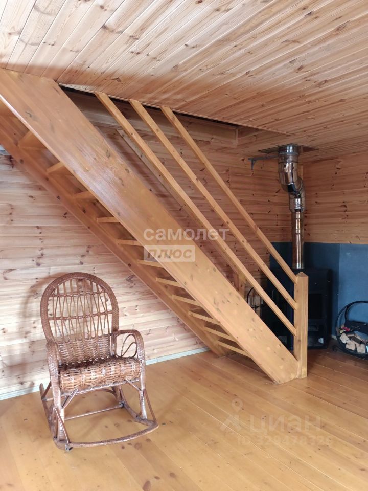 НА ПЕРВОМ этаже большая 27 кв м гостинная с металлической печкой на дровах, откуда ведет добротная устойчивая лестница на второй этаж.