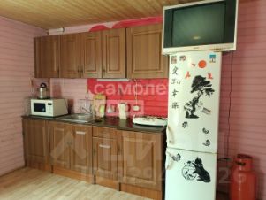 отдельный вход на просторную кухню с кухонным гарнитуром, стол со стульями, диван.