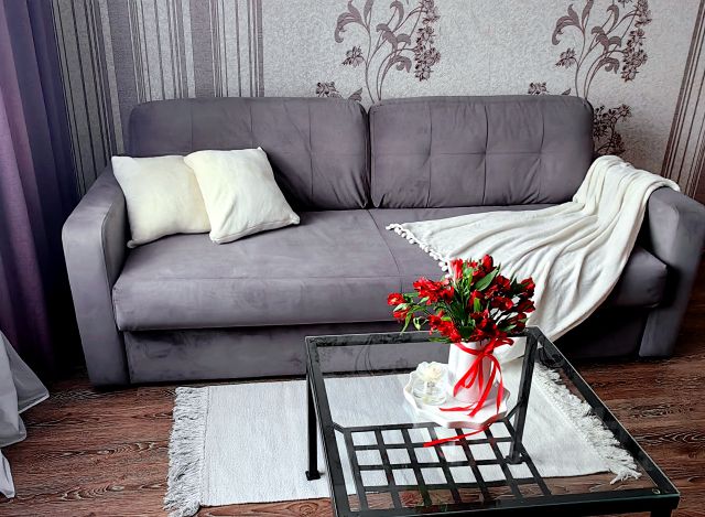 Сдается квартира однокомнатная: все для жизни есть. Полный набор мебели, стиральная машина, холодильник. Квартира светлая, в комнате 2 окна. Есть балкон-застекленный.