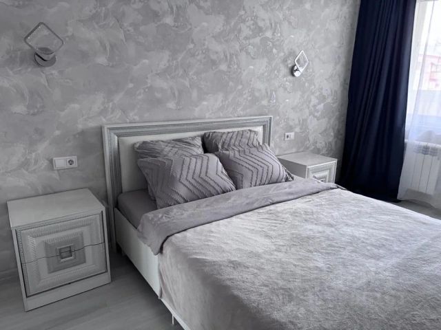 Двухкомнатная квартира 45 м, с балконом, гостиная и кухня совмещены 28 м, спальня 10 м, санузел совмещённый, вся мебель и бытовая техника имеется, посуда, чайник, стиральная машина, электроплита новая многофункциональная, горячая вода всегда есть, большой бойлер нагрева воды, в спальне кровать 140 на 200, в зале большой диван 240 длинной, ТВ, интернет, вайфай, постельное бельё, полотенца.